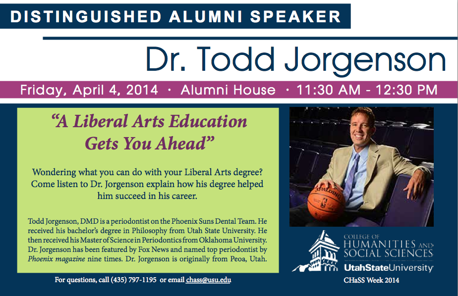 Distinguished Alumni Lecture NOTE: This speaker is a USU Philosophy alumnus. There’s no telling where the road will take you!