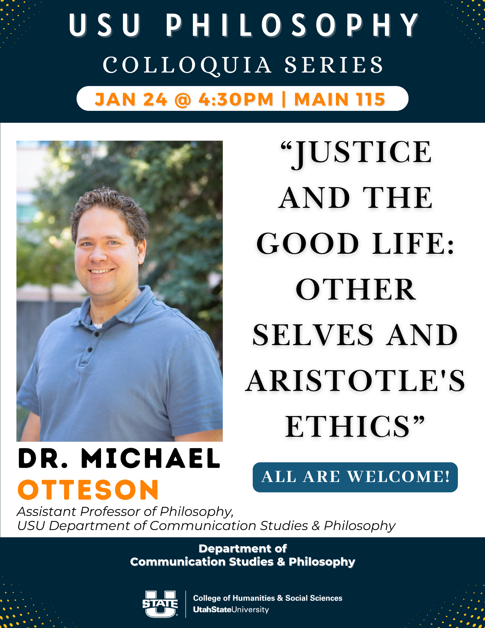 Colloquium this Friday, Jan 24 @ 4:30pm, Old Main 115: Dr. Michael Otteson on “Justice and The Good Life: Other Selves and Aristotle’s Ethics”