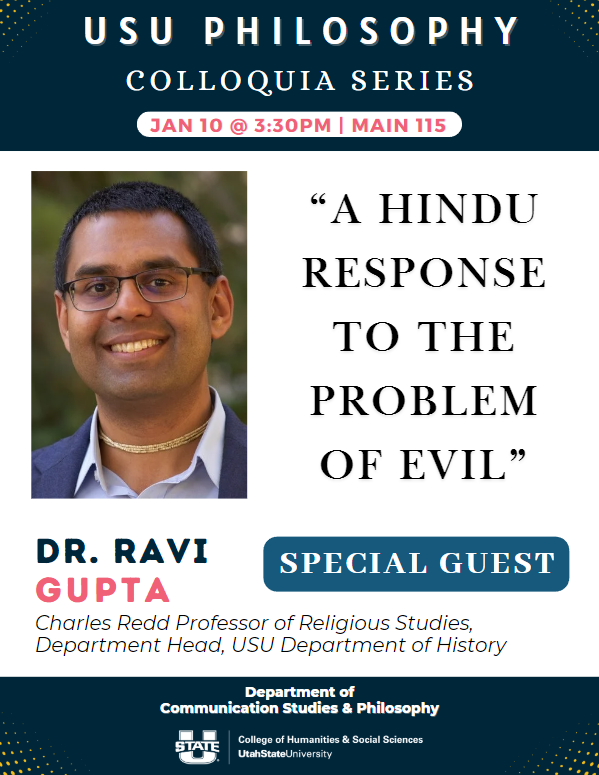 Colloquium this Friday, Jan 10 @ 3:30pm, Old Main 115: Dr. Ravi Gupta on “A Hindu Response to the Problem of Evil”
