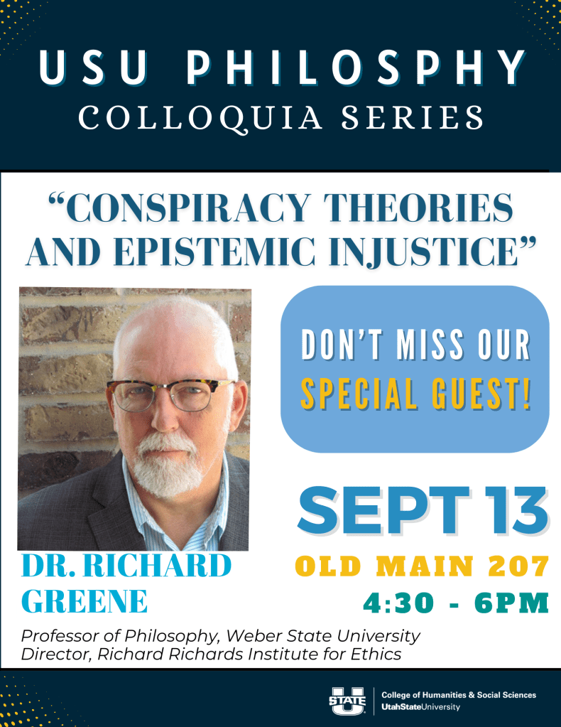Updated Fall 2024 schedule for the inaugural USU Philosophy Colloquia Series!