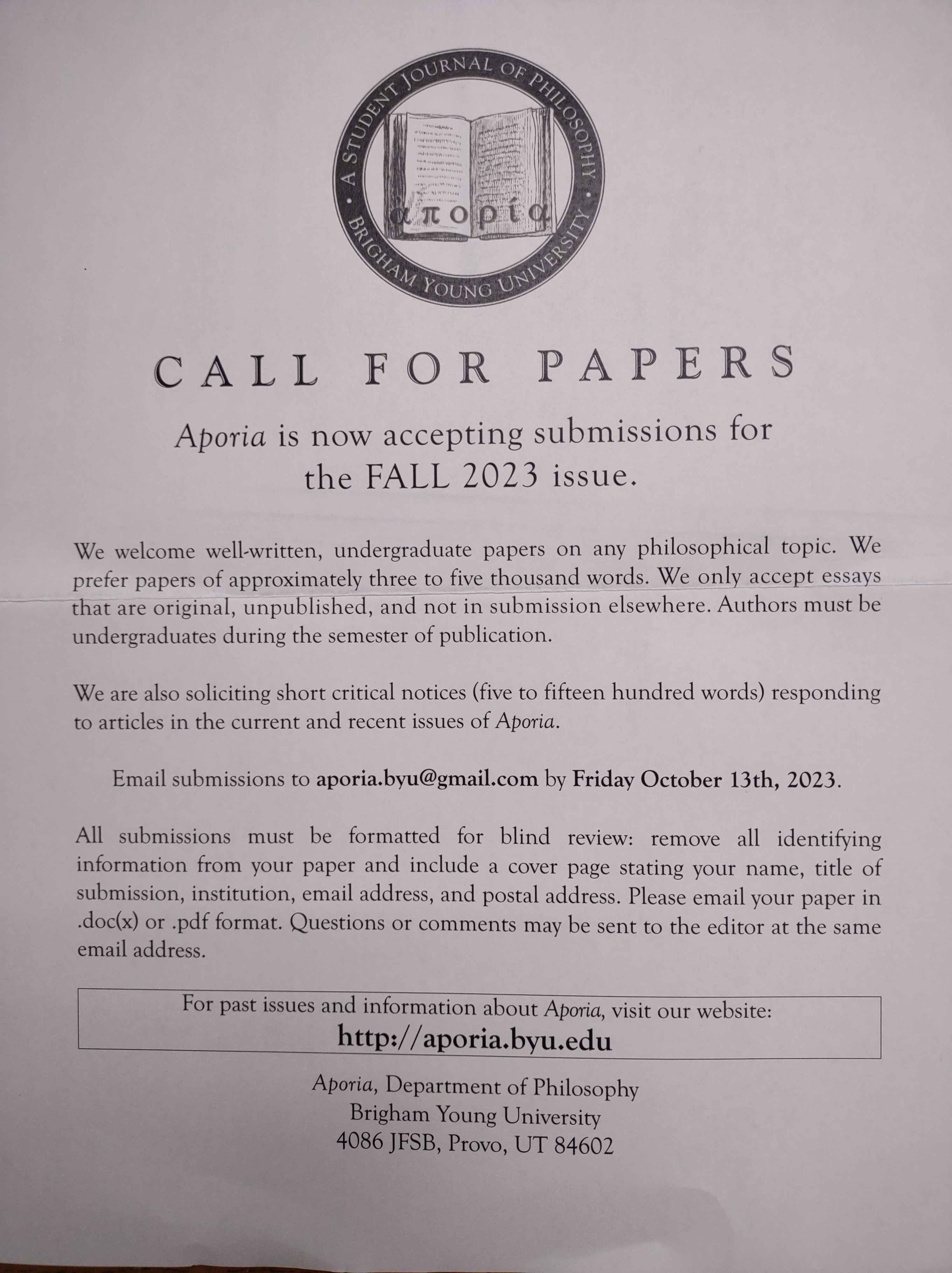 Aporia call for papers